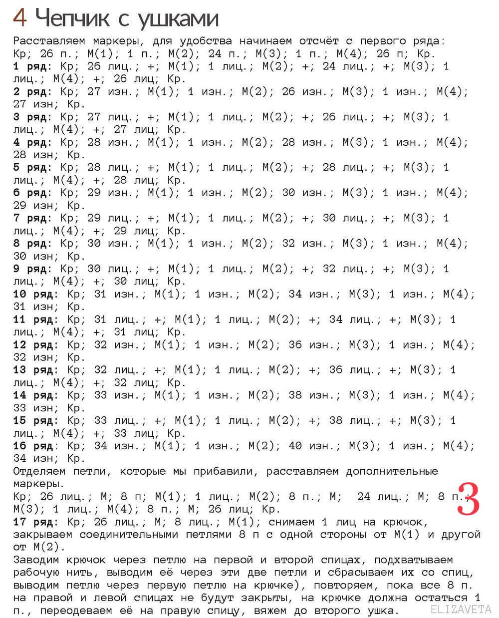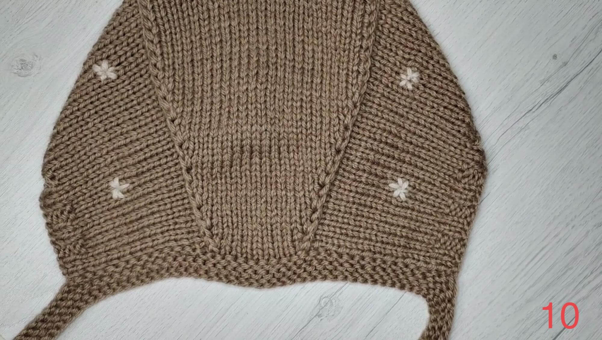 Этот классический чепчик, или чепчик-капюшон, вяжется поворотными рядами, без швов, чулочной вязкой (лицевой гладью), кромки обычно выполняются платочной вязкой. В нашем мастер-классе мы начинаем с резинки. Начать можно либо с платочной вязки, либо с резинки 2/2 или 1/1. Выбирать вам. Сначала вяжется главная (основная) часть чепца, лицевой гладью. Затем придаем шапке нужную форму за счет убавок (схема убавок прилагается). Затем, набираются петли вдоль нижней кромки и набираются петли для завязок, полоса нижней кромки, переходящая в завязки, также вяжется платочной вязкой.