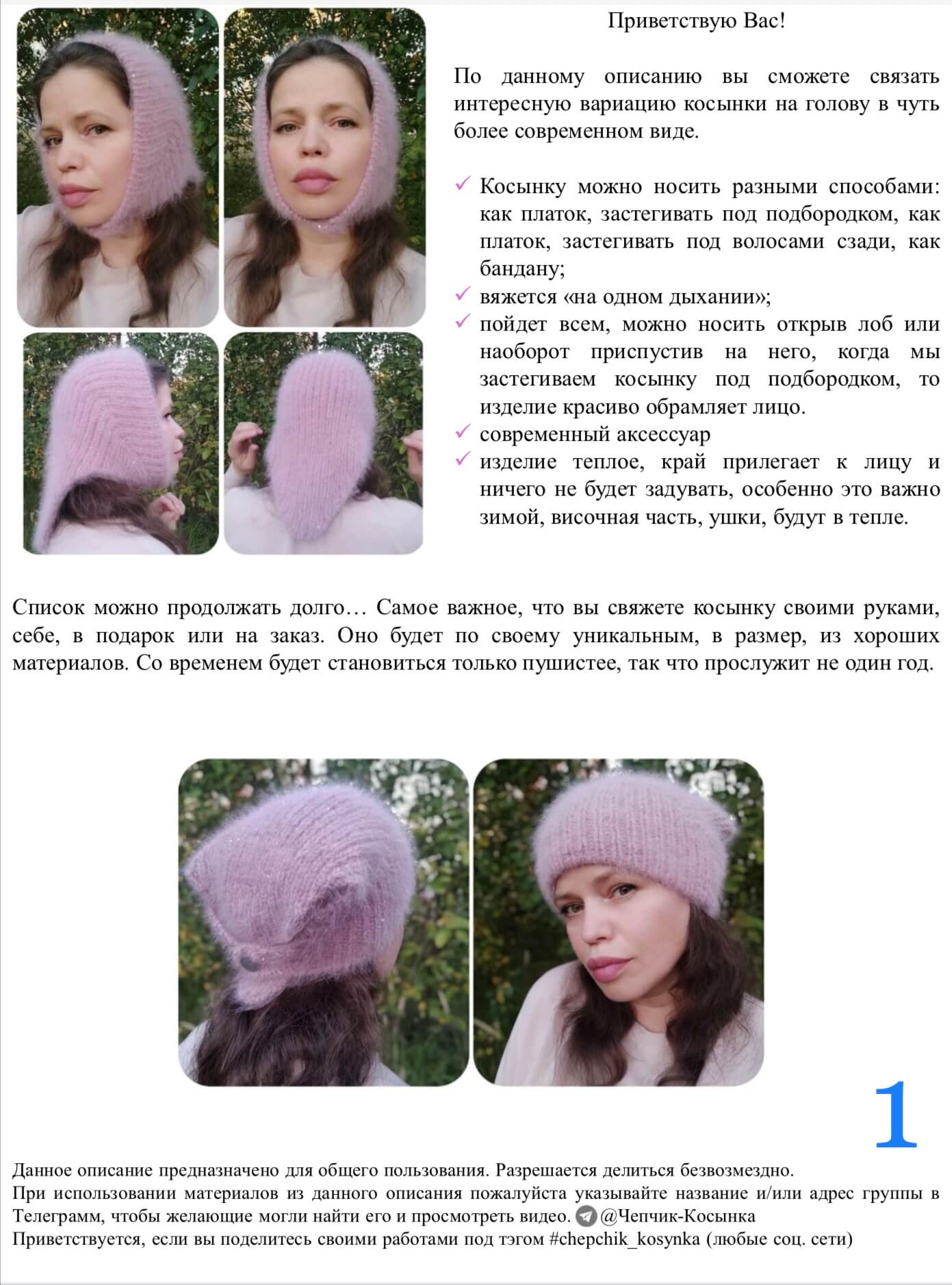 Для начинающих мы предлагаем описание чепчика из мохера или шерсти простой чулочной вязкой.