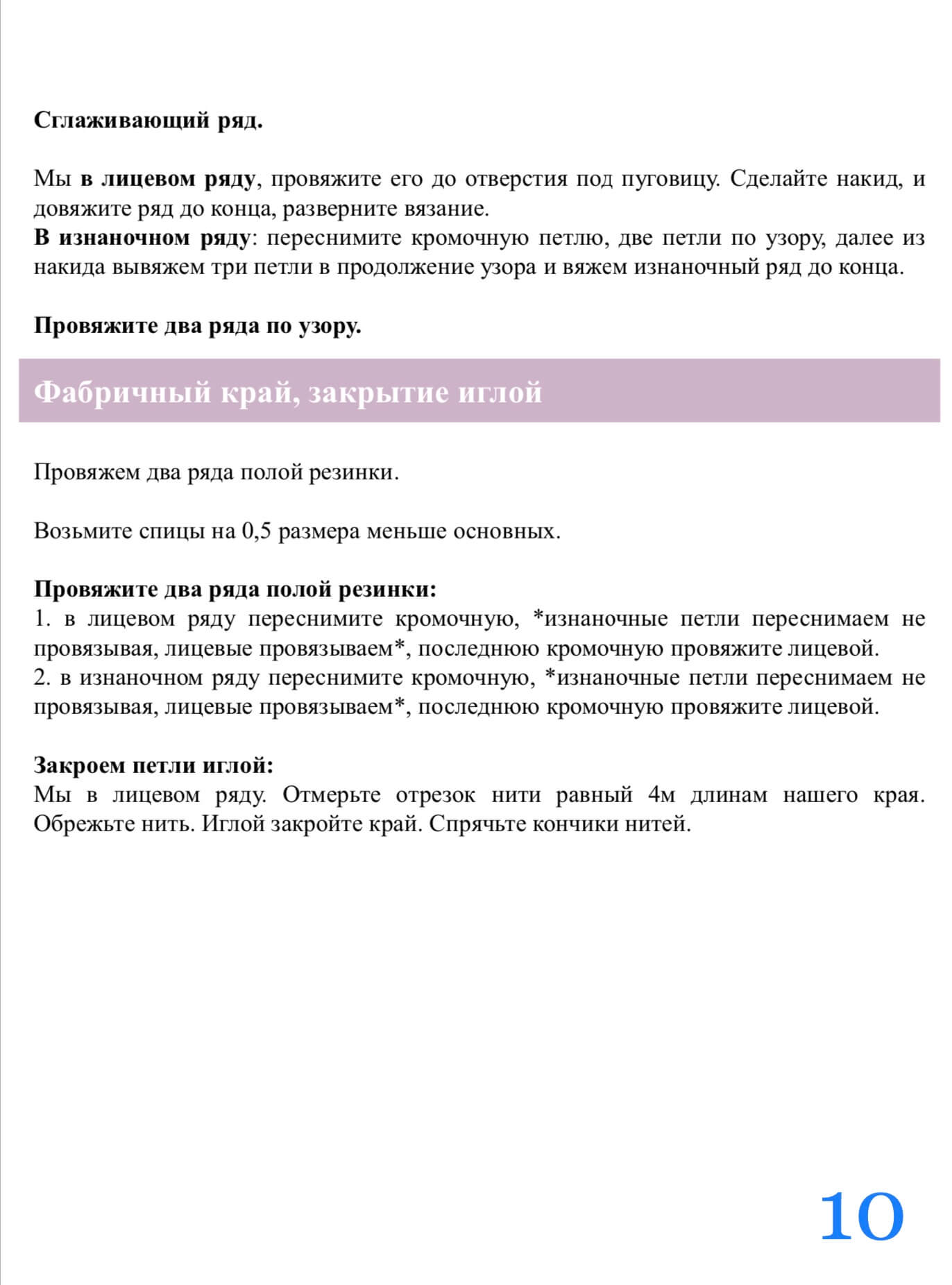 Основной узор – платочная вязка (все пет. вязать лицевыми, в лиц. и изн. рядах).