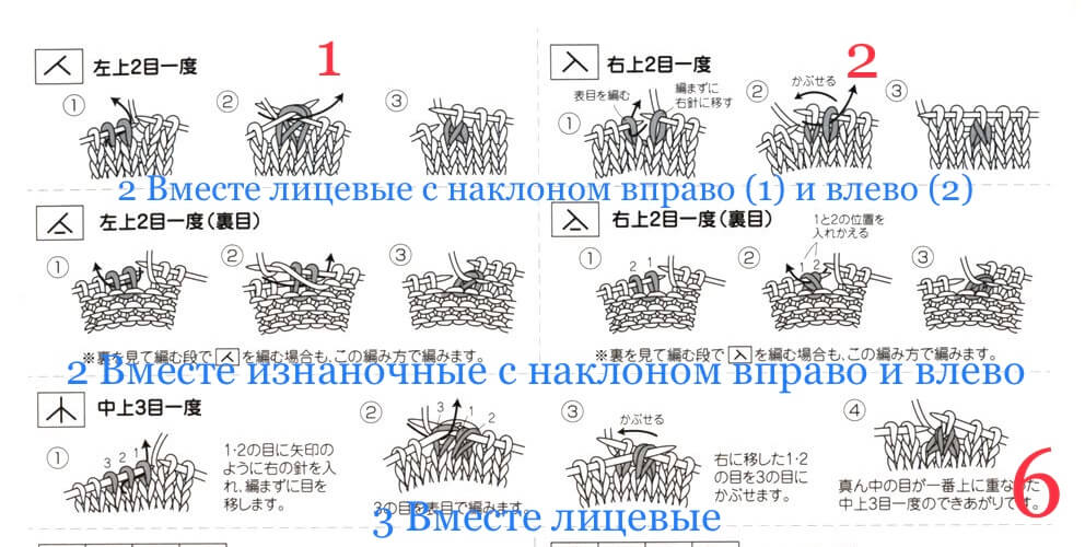 1-й ряд убавок (ИС): 1 изн. п. снять, не провязывая, 1-й МК переснимаем, изн. не доходя 1 петлю до 2-го МК, 2-й МК переснимаем, 2 ВМ И с наклоном вправо (см. схему № 6).