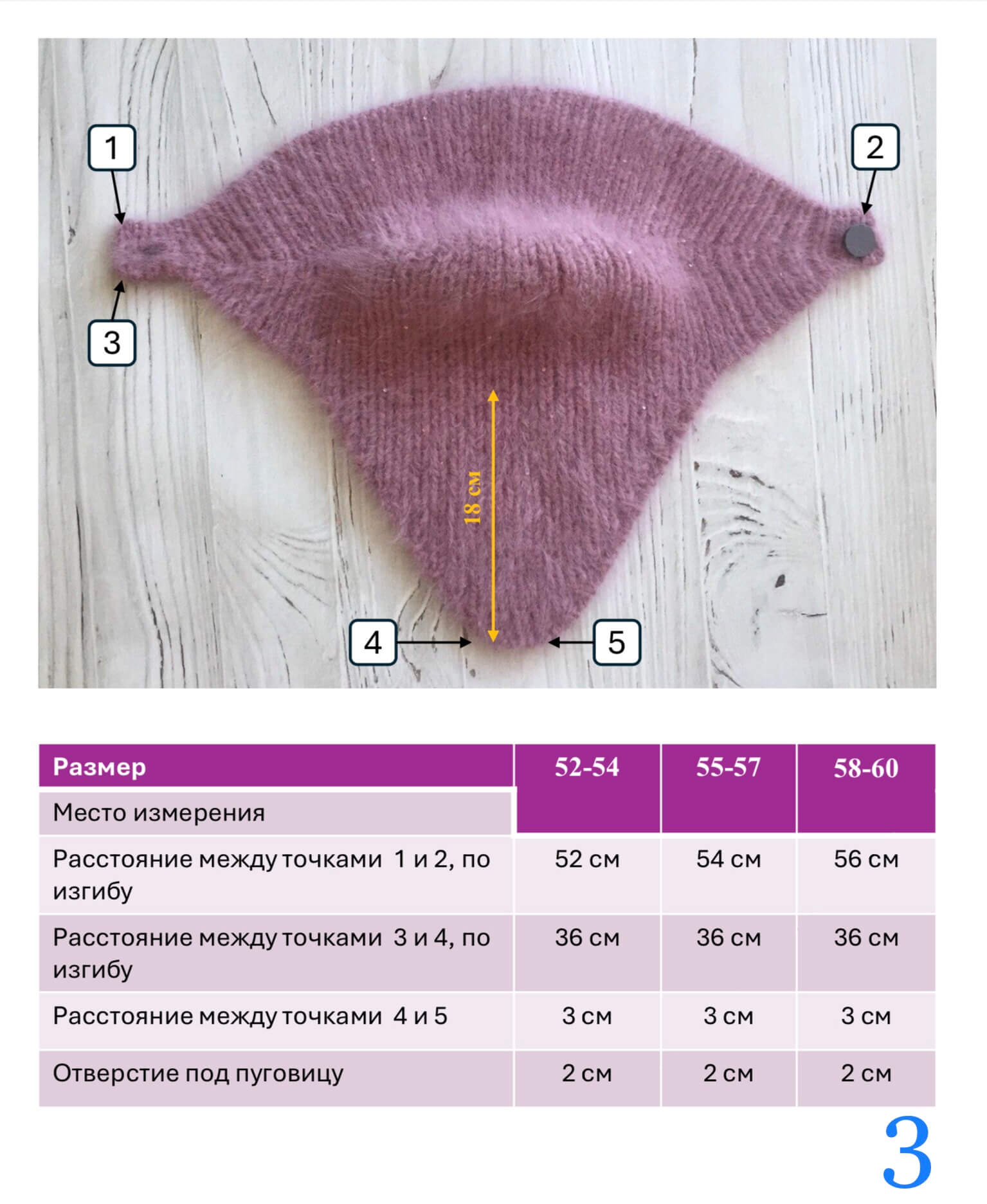 В описании размер шапочки: 47/52/56 см. Выполняем работу чулочной (лицевой) вязкой. Также здесь используем платочную вязку (все ряды – лицевыми пет.)