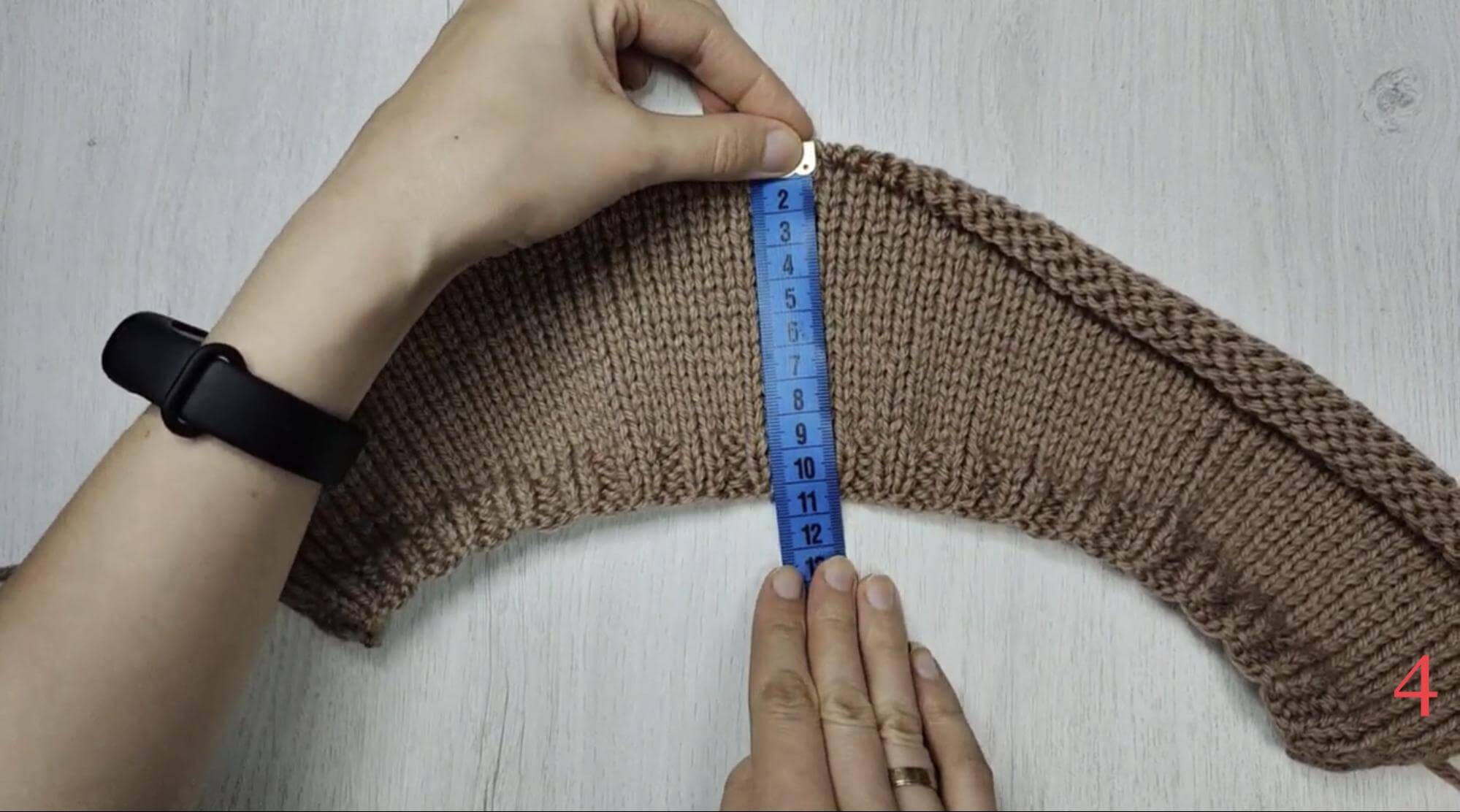 Провязать в высоту лиц. гладью столько рядов, чтобы прикрывало уши. Приблизительно от наборного ряда получилось 10 см. Последний ряд – лицевой. Затем, в изн. ряду начинаем делать убавки в боковых частях шапочки.